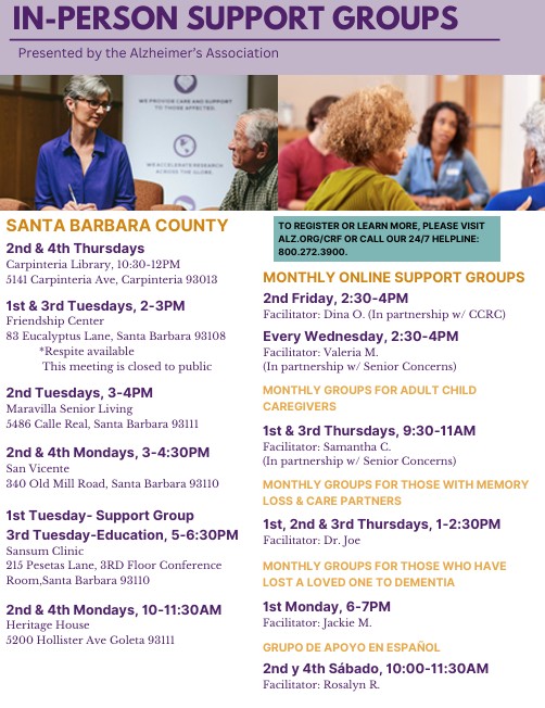 In our area, the Alzheimer’s Association sponsors several such groups for those who care for loved ones affected with dementia. Some groups are also open to the patients themselves.